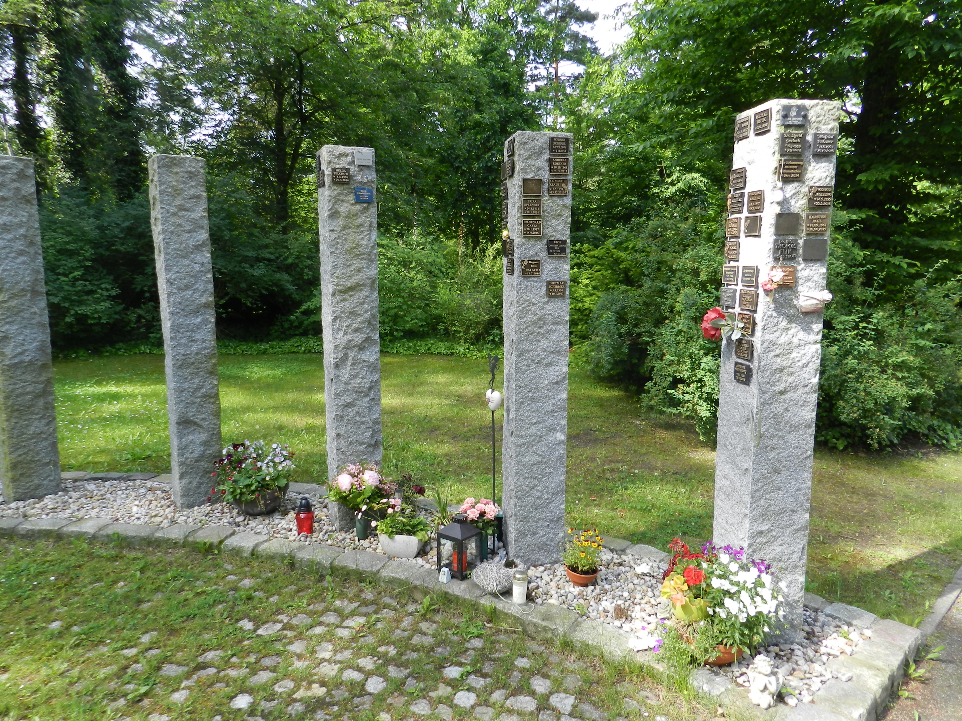 Urnen in einer Wahlstelle beigesetzt werden. An die Verstorbenen wird mittels eines gestalterisch passenden Gedenksteins erinnert,