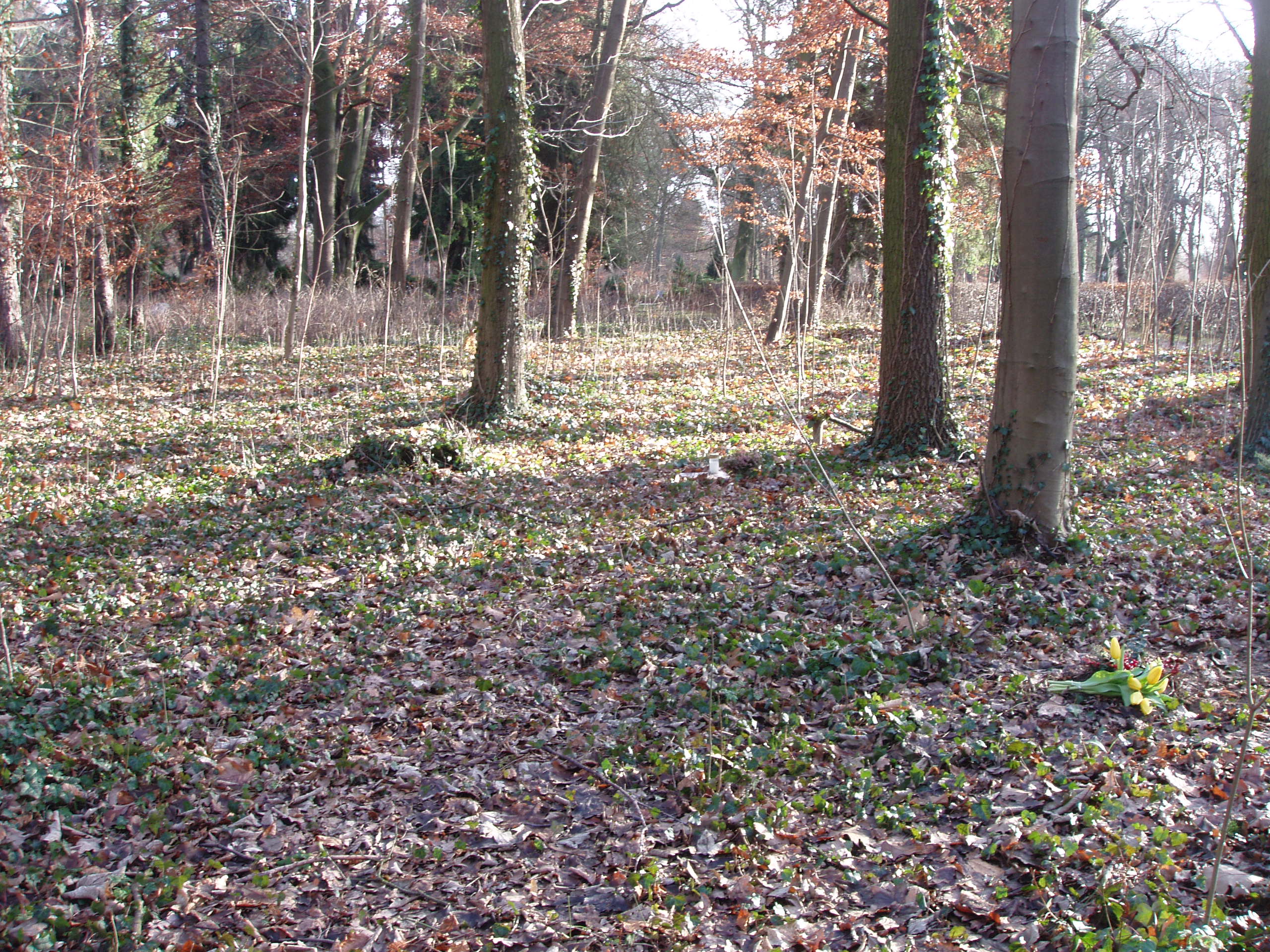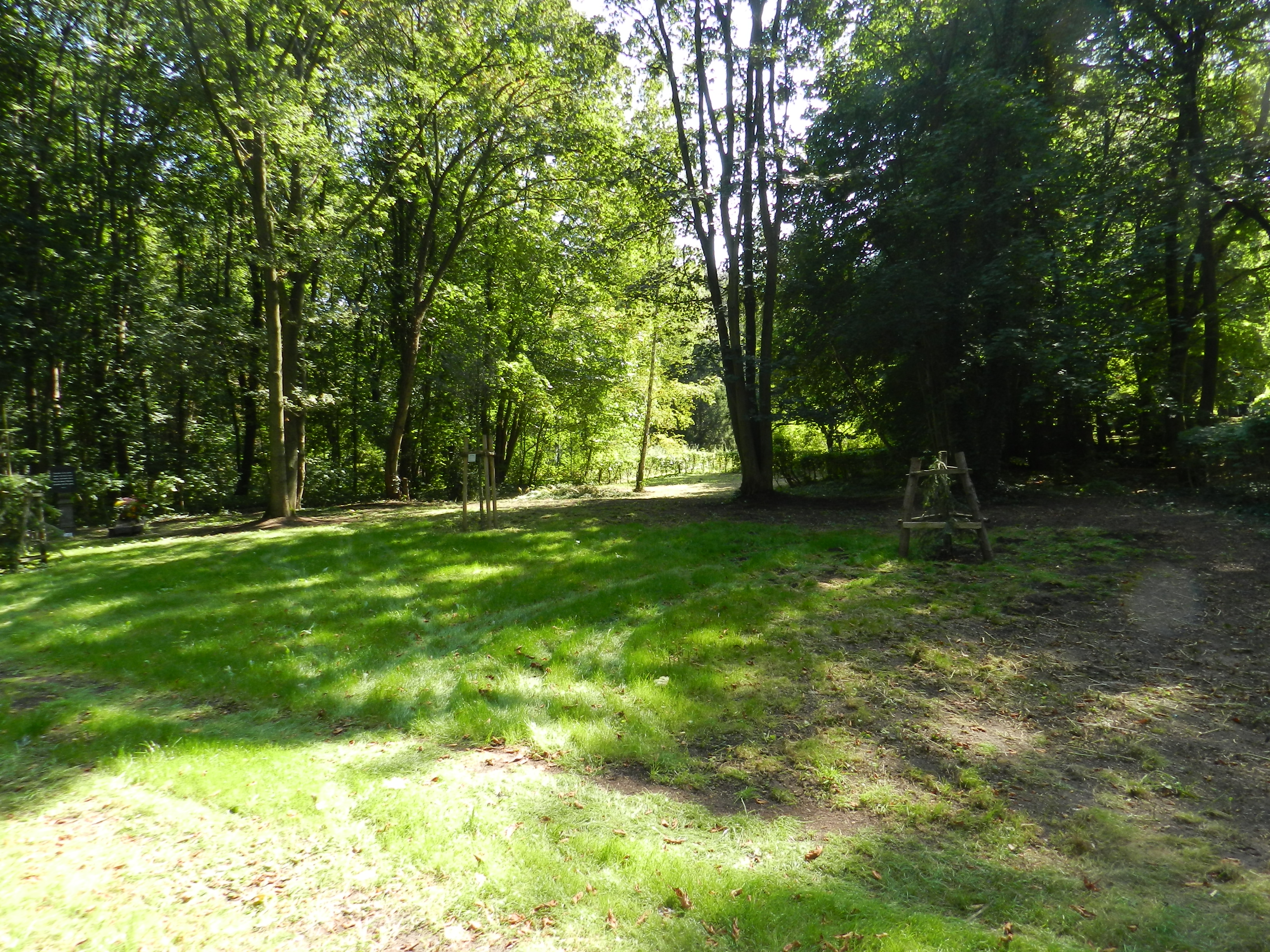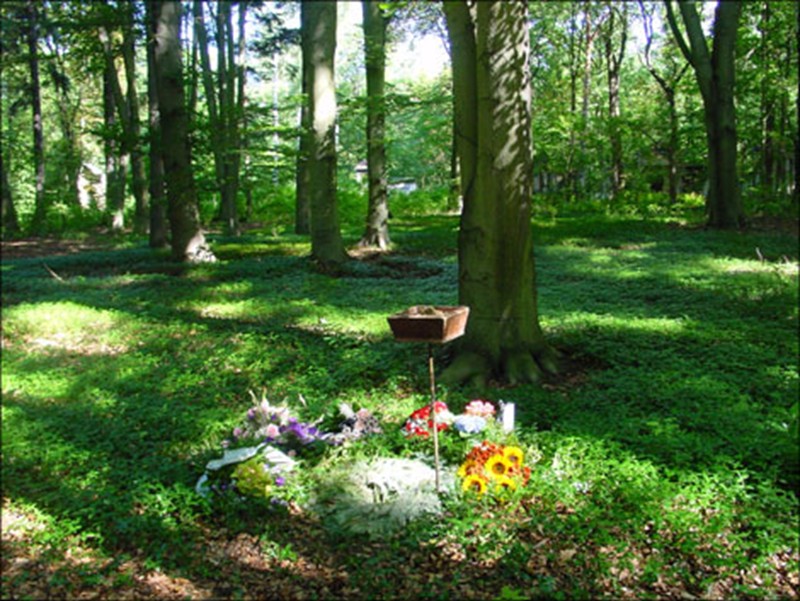 die in einem Teil des Friedhofes liegen, der einem Wald ähnlich ist.