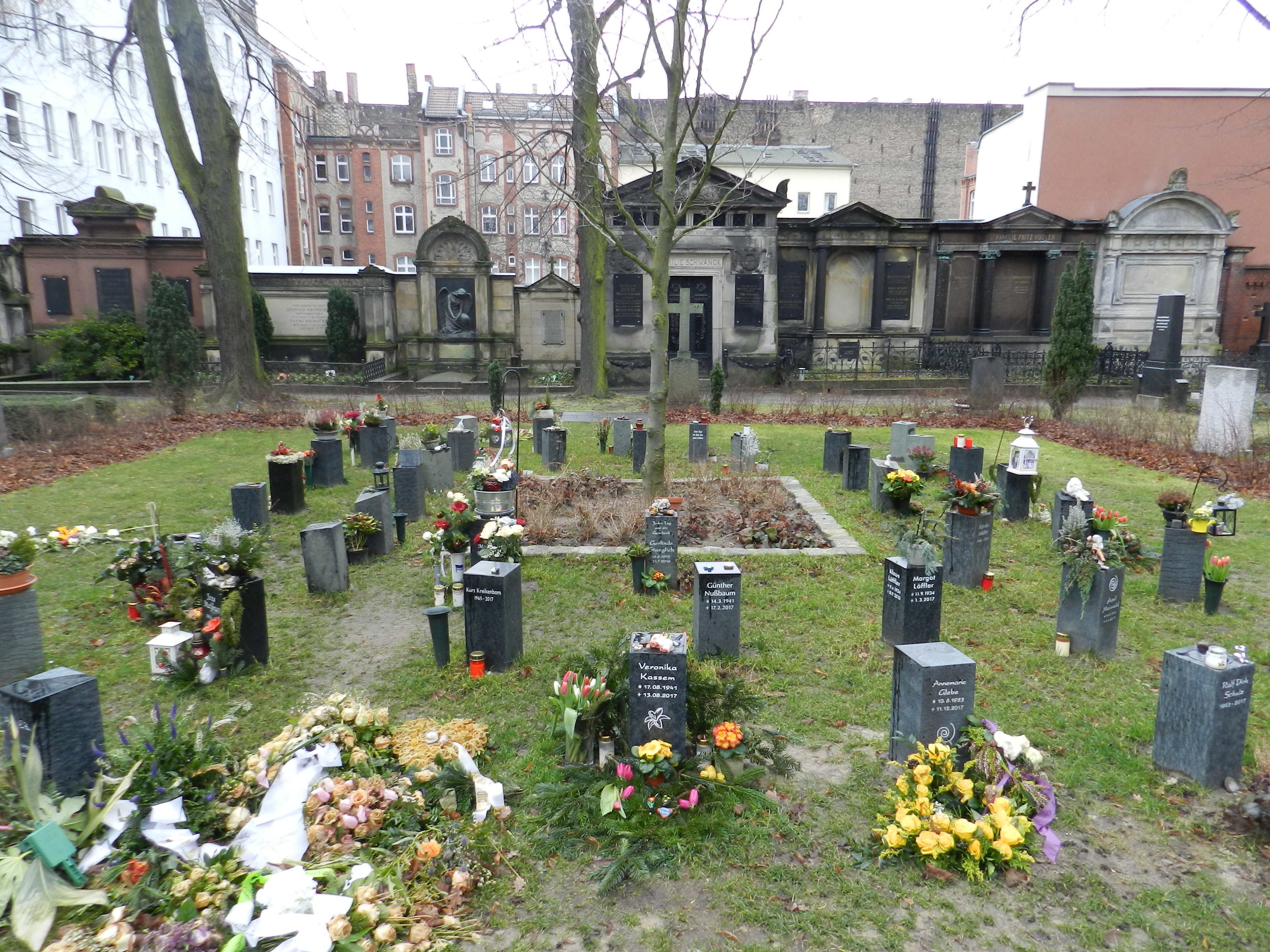 Auf dem Zwölf-Apostel Kirchhof in der Kolonnenstraße und dem St.Matthäus Kirchhof in der Großgörschenstraße können Urnen an
