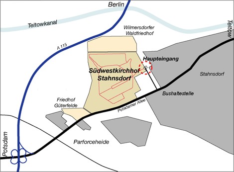 Der Friedhof liegt südlich von Berlin zwischen Teltow und Potsdam. Er ist einer der größten